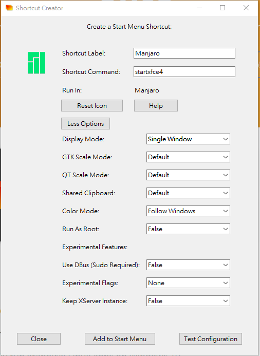 好了之後可以先Test Configuration測試一下是不是自己要的,若沒問題就`Add to Start Menu``