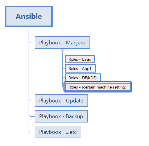 在範例中,我會建立一個專門給manajro用的playbook,用途是用來setup我的manjaro desktop, 然而這個Playbook裡面會長這樣